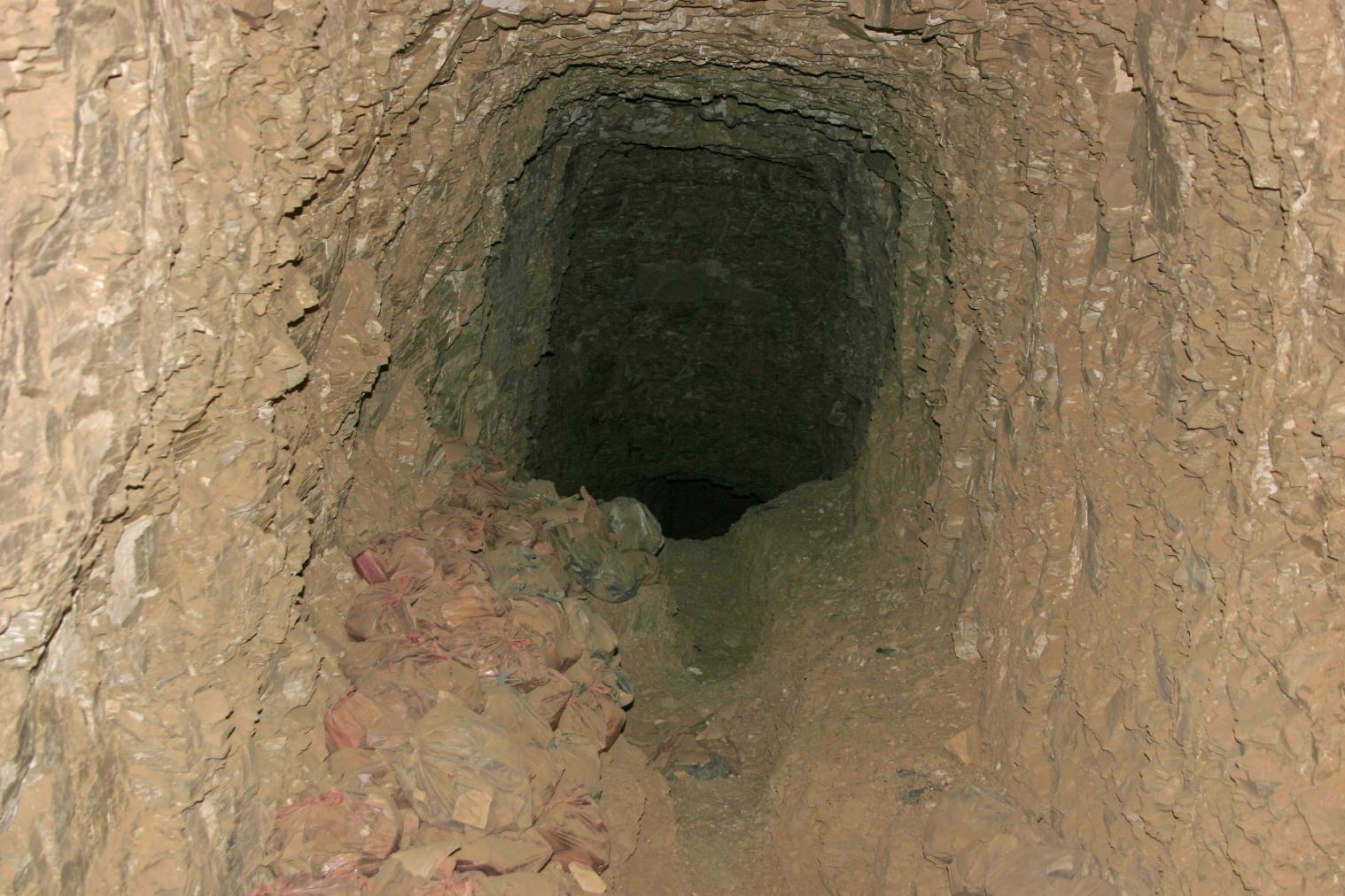 The tomb descends in three different directions on three axes. Each axis consists of a series of corridors and two at least end in rectangular chambers.