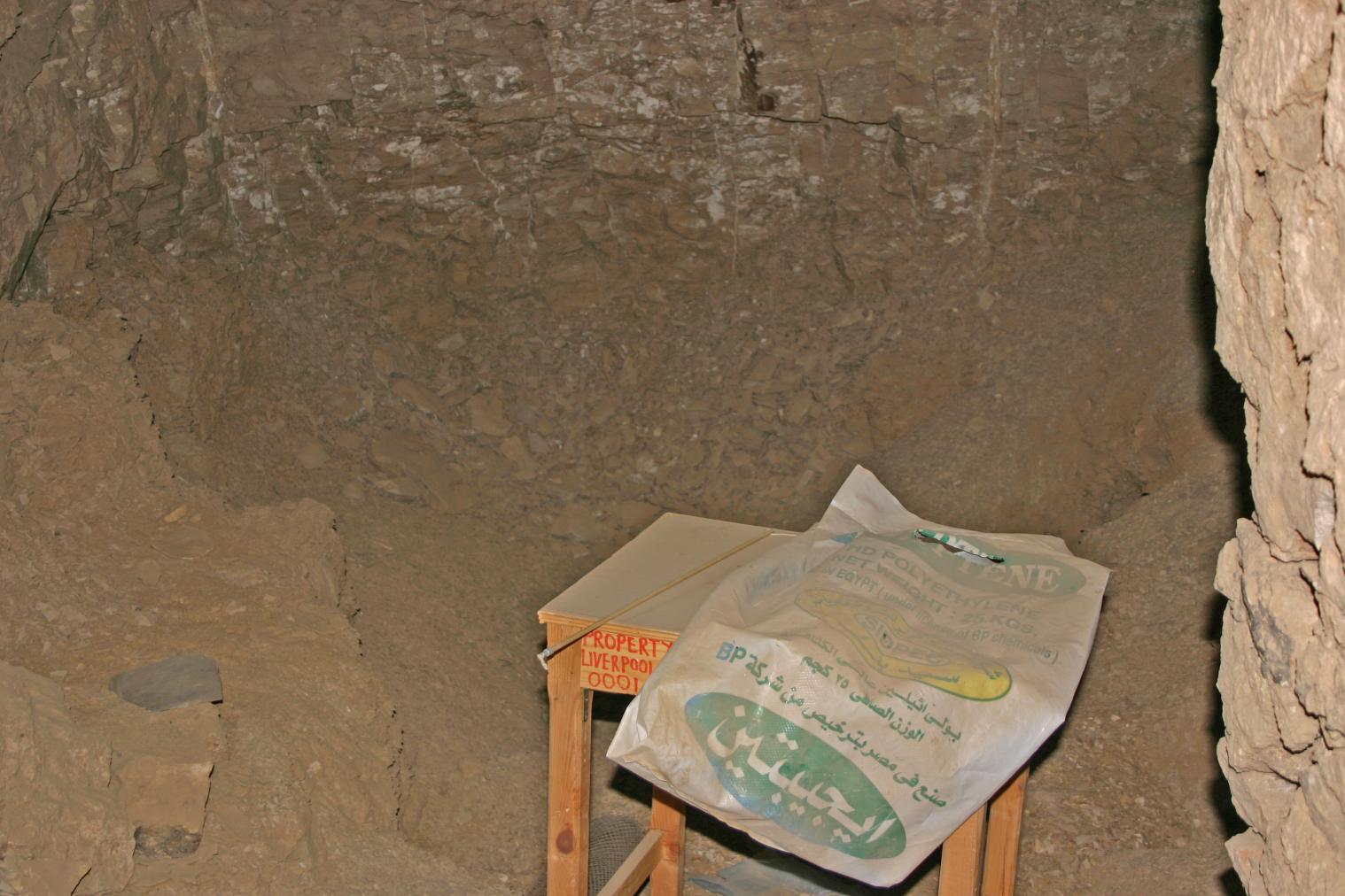 See entire tombAt the end of the south corridors is a very narrow, rectangular chamber. In the floor of this chamber is a pit which would have served as a sarcophagus emplacement.