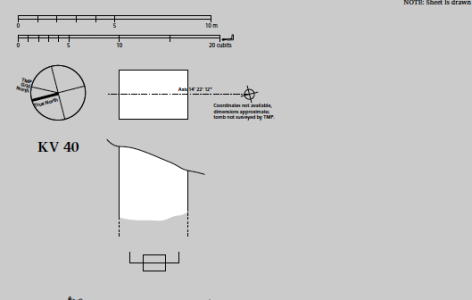 KV 40 is located in the south branch of the southwest Wadi. Only the upper part of the shaft is accessible; the rest is filled with rubble, and nothing is known about the tomb's layout.