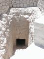 See entire tombGritty fragments of a plaster and stone wall still line part of the gate, showing that at one point access into the chamber was blocked.