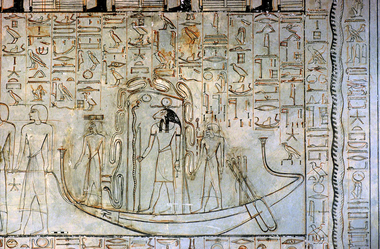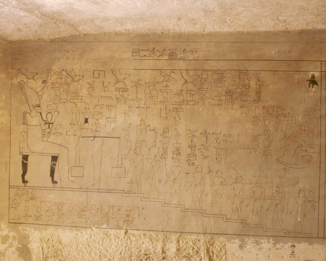 See entire tombThe decoration shows the king in the presence of deities.