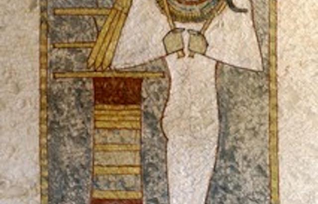 See entire tombThere is a representation of Osiris on the rear (west) wall. This decoration is painted over a thin wash directly on the wall surface.