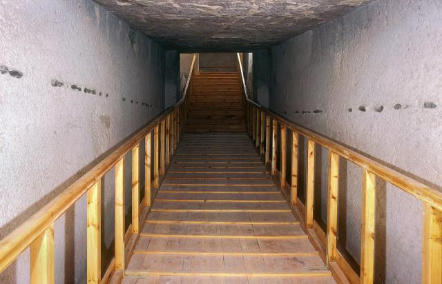 See entire tombThis stairway is cut into the floor in the northwest (left rear) corner of chamber F and extends to gate G.