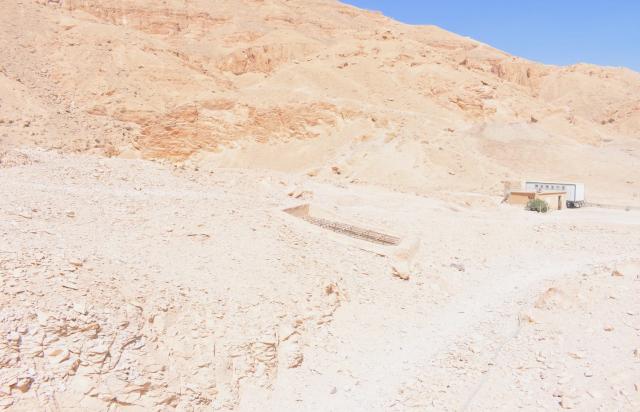 QV 14 lies on the south side of the main Wadi along the secondary footpath and opposite QV 13. It consists of a shaft (A) leading to one large, undecorated chamber (B). The shaft entrance has a modern masonry surround.