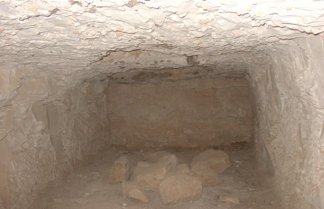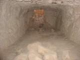 See entire tombShaft entrance has a modern masonry surround spanned by a metal grill or mesh.