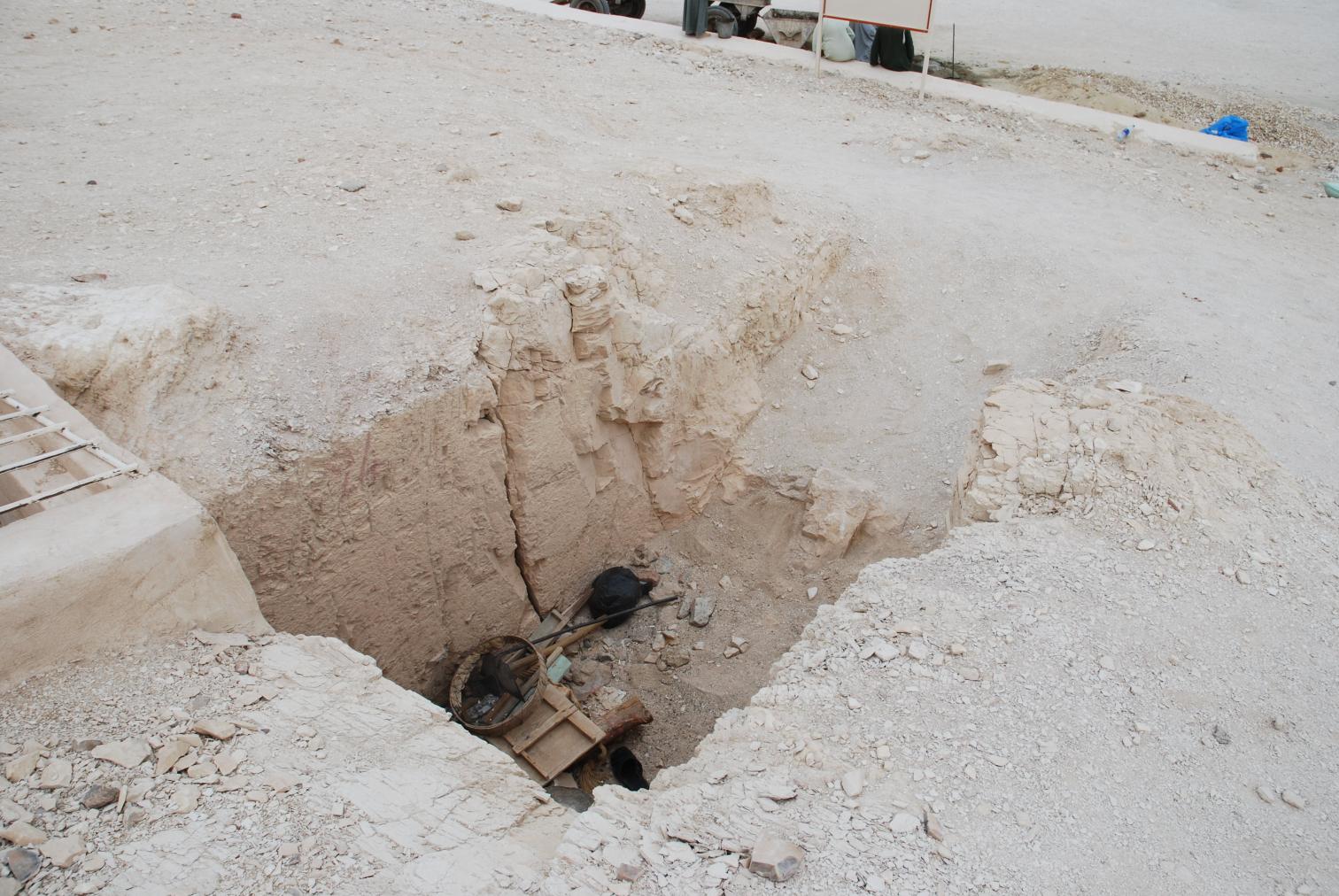 According to the GCI-SCA, the marl rock is heavily weathered and fractured along bedding and joint planes. It was formerly used as a toilet by site personnel and trash accumulated in the shallow trench at the end of Ramp. Since this refuse was removed in 2007 and 2008 by GCI-SCA, site personnel began using this space to store miscellaneous items. Exposure to the environment and inappropriate use of the tomb as a toilet and dump has contributed to its poor condition. It has been recommended by the GCI-SCA to partially rebury tomb to prevent continued use.