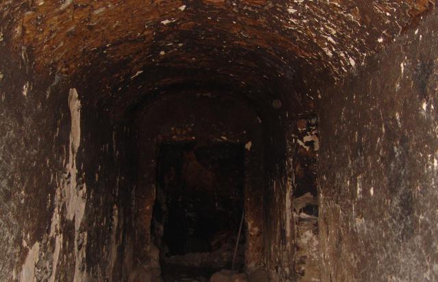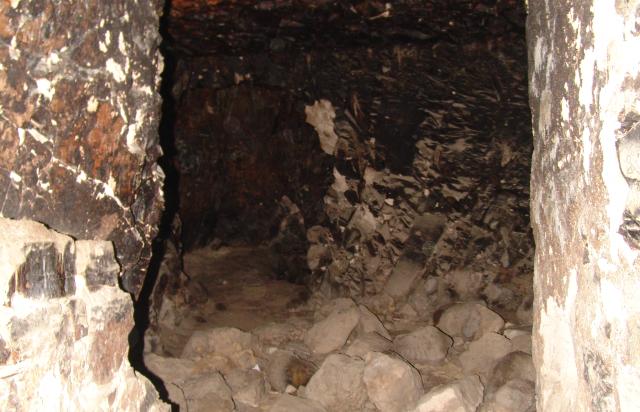 According to the GCI-SCA, although there is apparent rock loss in the tomb, it is otherwise considered structurally stable. Localized areas of rock loss include basal erosion of the walls in corridors (B) and (C), and at Gate C. The constructed masonry wall in front of the niche in chamber D is partially collapsed, with edges of the wall requiring stabilization to prevent further loss. The tomb is largely darkened from fire, such that rock surfaces and plaster surfaces alike are covered with a heavy dark brown deposit. The plaster is also possibly heat-damaged. Only the lower walls at the entrance in chamber B, where debris may have provided protection and where the heat source rose upwards toward the entrance, escaped fire-related darkening. There is evidence of post-fire loss, but only in relatively small localized areas on walls and ceiling. There is no evidence of stabilization treatments. The basal erosion of walls in corridors (B) and (C) and of the doorway between these chambers indicates the likelihood of past damage from flooding as well. Christian Leblanc indicated that a large amount of upslope runoff entered into this tomb during the November 1994 flood. Heat damage may also have weakened plasters and contributed to loss of substantial infill material in places and the partial collapse of the constructed masonry wall of the niche in chamber D. The long history of access to this tomb has also allowed for substantial bat activity and insect nests, which have also added to the tomb's overall deterioration.