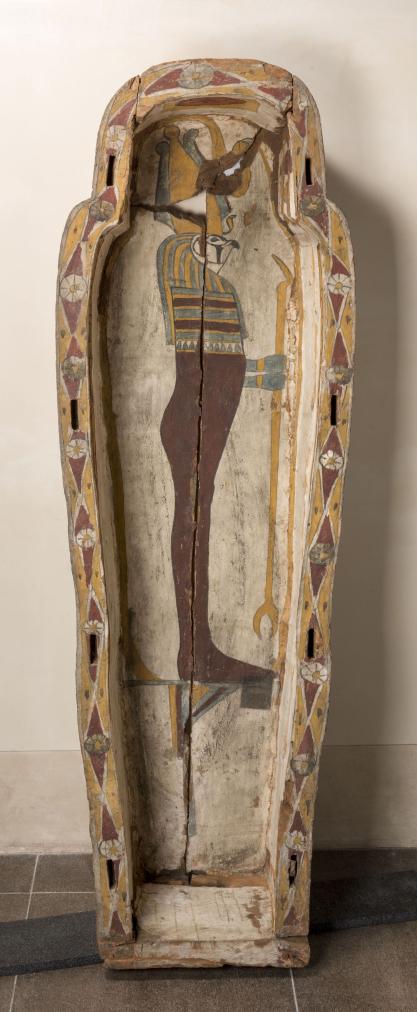 QV 43 is attributed to Sethherkhepshef, one of the sons of Rameses III. He is listed as the fourth son in the prince list at Madinat Habu and is not to be confused with Rameses Sethherkhepshef, who would later become Rameses VIII. Sethherkhepshef's titles are listed as 'King's son', 'King's Son of his Body', 'Hereditary prince of the royal children of his Majesty', and 'Charioteer of the great stable'. There is no other mention of this prince outside of his tomb and at Madinat Habu, and it is likely that he died in his youth. As with other sons of Rameses III buried in the Valley of the Queens, the prince is depicted with the side lock of youth and following his father, who performs the rites and offerings needed for the prince to reach the afterlife.
