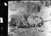 QV 45 is located at the west end of the south branch of the main Wadi, below and north of QV 44. It is an unfinished tomb that consists of a slightly descending Ramp (A) leading to an entryway and an unfinished corridor (B) oriented east-west. Just in front of the entrance, the ramp has a rock-cut Overhang. Remains of plaster are present on the ramp walls and ceiling, and in the entryway. Plaster is applied over compact materials with limestone shard inclusions.
