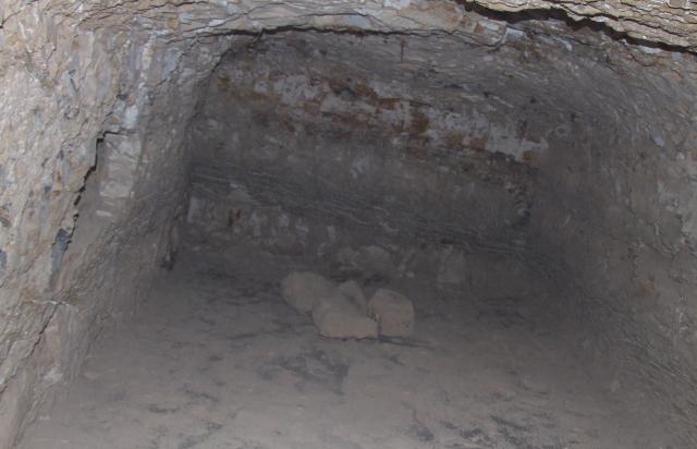 See entire tombA long burial chamber oriented north-south. The chamber appears structurally stable, but is dangerous given the loose and falling surface rock.