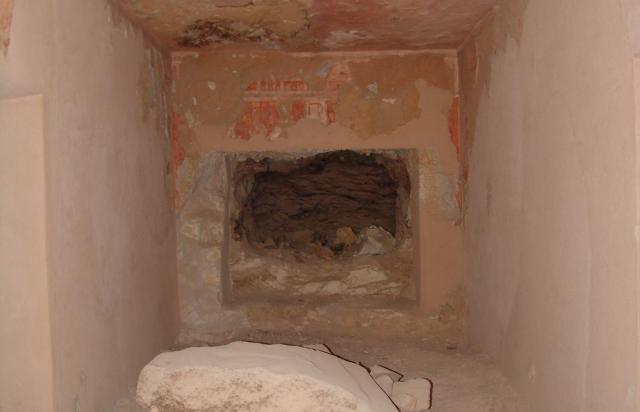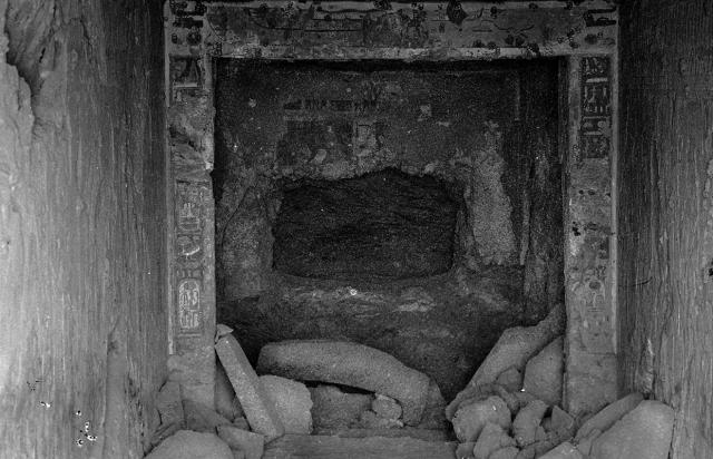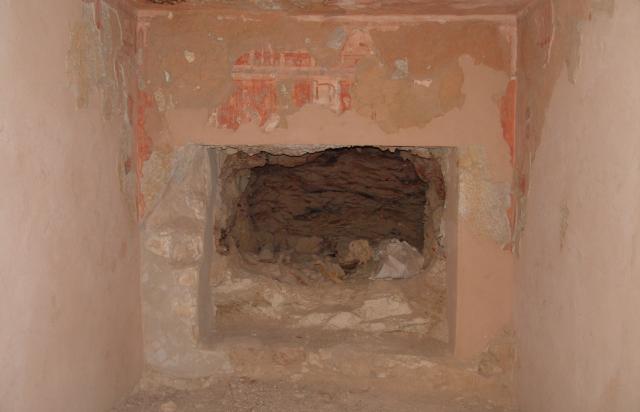 See entire tombThe southern wall of the Burial Chamber (C) blocked this side chamber and was damaged when looters broke through. The side chamber is, however, unfinished and contains no decoration.