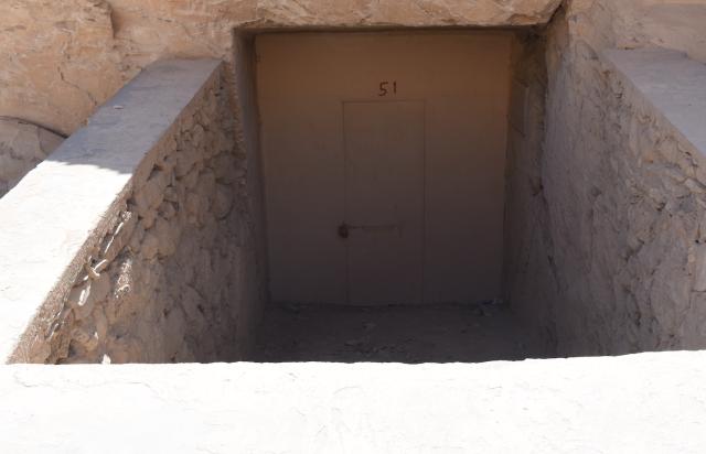 Currently the tomb is not open to visitation. It has, however, been heavily treated as if in preparation for opening. The doorway is blocked by a metal door and the entrance ramp has a modern masonry surround with cement capping.