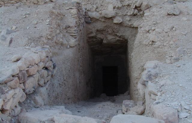 See entire tombThe entryway consists of a steep Ramp with Divided Stairway. The ramp originally contained 30 Steps on either side, but was covered with limestone blocks during the Coptic Period, reducing steps to 16. The entryway has a large Overhang.