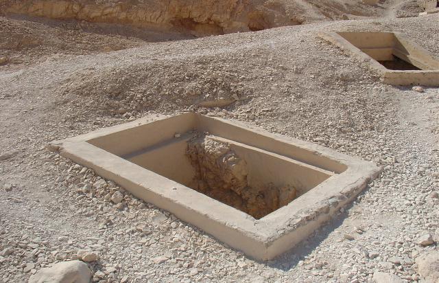 QV 7 lies on the south side of the main Wadi, between the paved visitor path on the valley floor and the higher footpath to the south. The shaft (A), which is partially filled with debris, has a modern cemented masonry surround without metal grill or mesh. The tomb has a primary chamber (B) and what has been interpreted to be part of a second chamber (C), though unfinished.