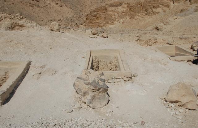 See entire tombA somewhat large, roughly cut and undecorated square pit chamber at the bottom of a long shaft leading down from the rear of chamber B.