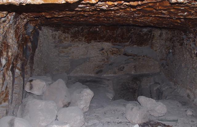 See entire tombLarge, roughly cut rectangular and undecorated chamber. The presence of large boulders suggests they were used to block the pit shaft cut into the northeast corner of chamber B or the entrance to chamber B itself.