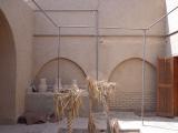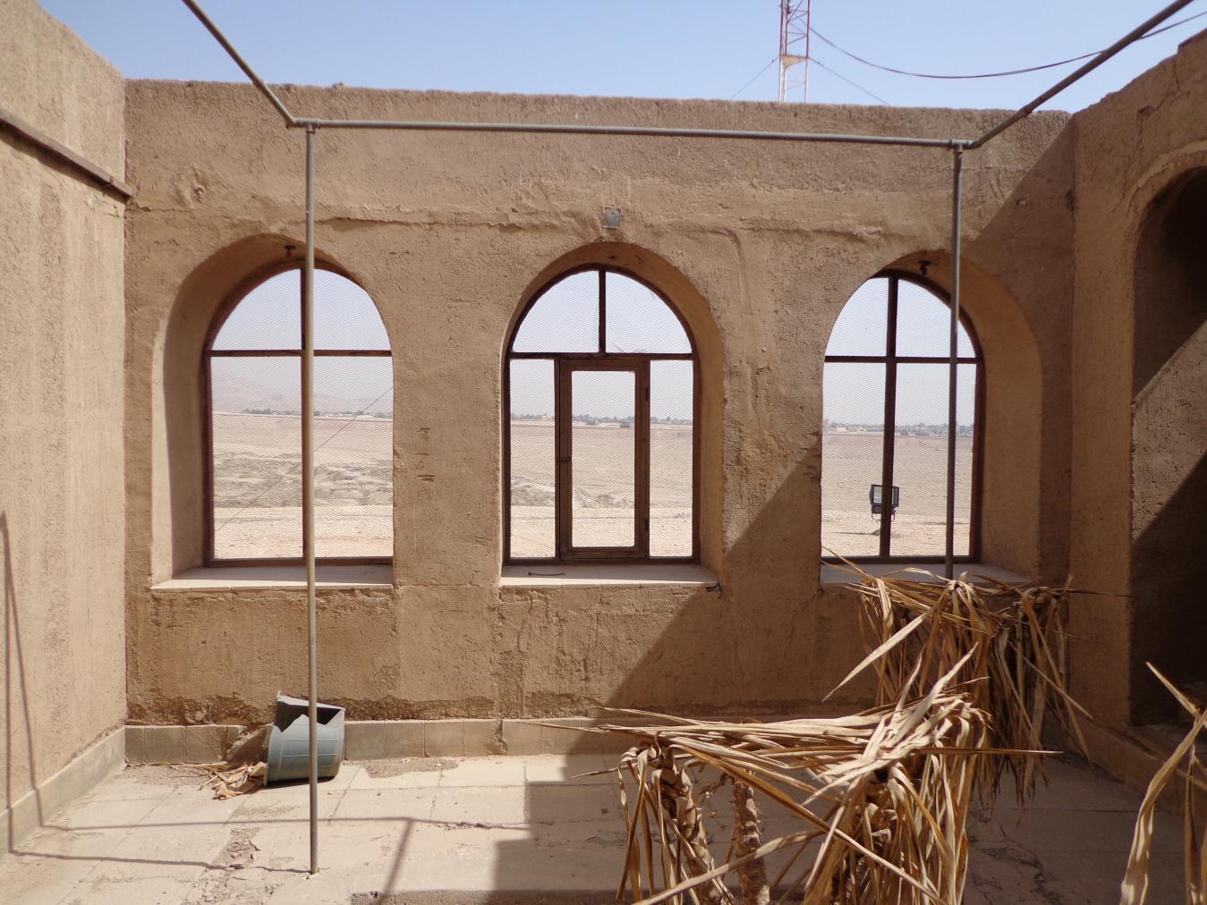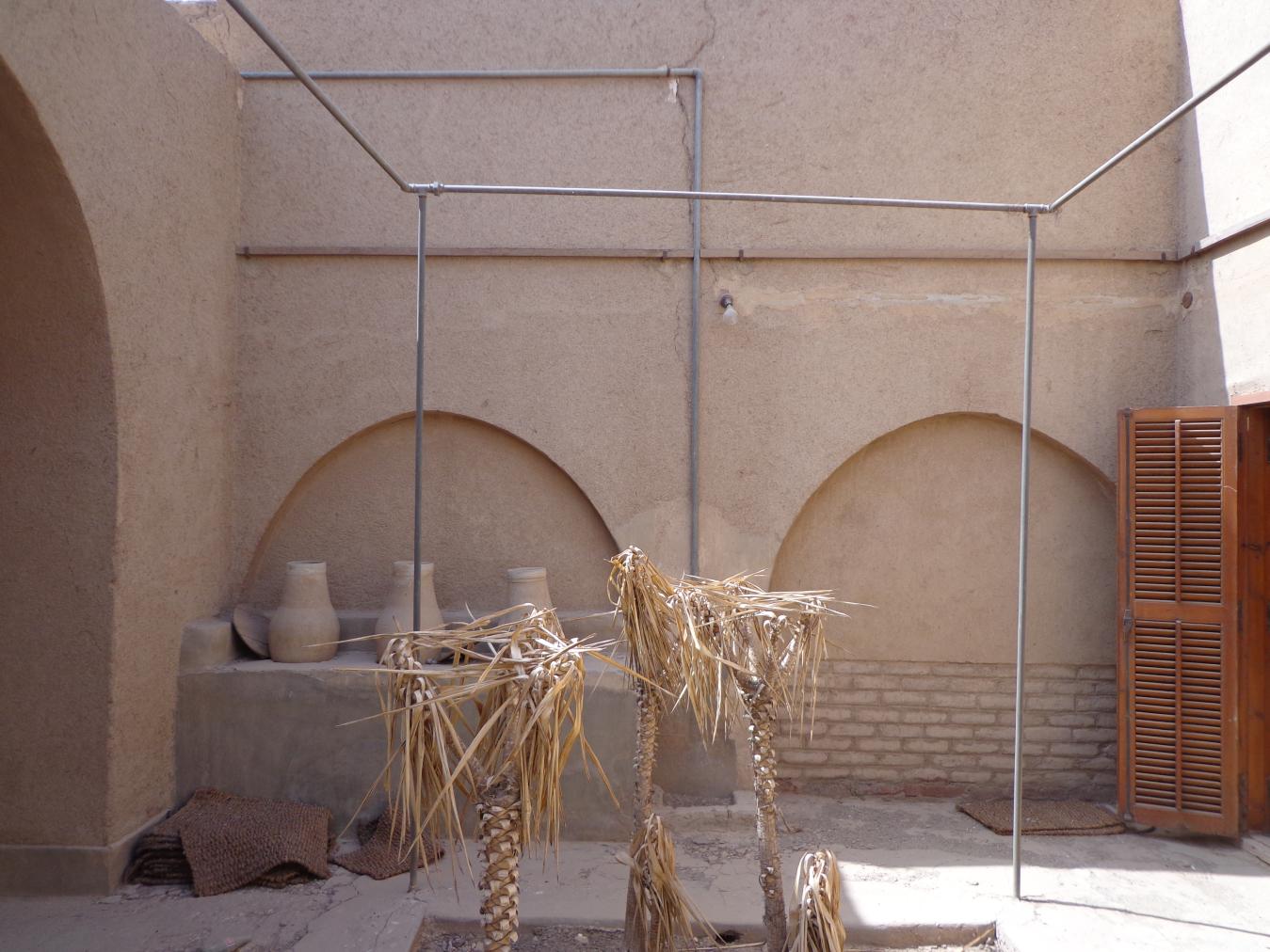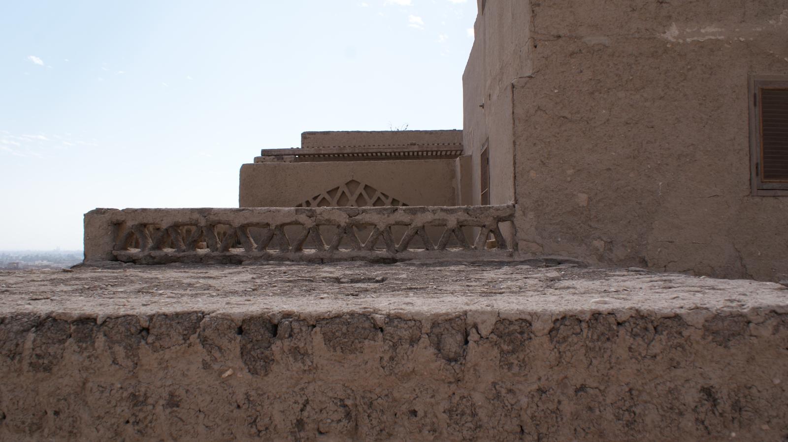 The entire house is made of mud brick with minimal use of wood, which was reserved for the roofing. Load bearing walls had foundations of limestone blocks. The mud brick was then plastered over. Later additions of electric wiring caused some damage to the fragile mud brick, and the wood was prone to termites. Conservation efforts have significantly restored the house, including adding new windows and doors decorated with mashrabiya, or latticework, common in Islamic architecture.