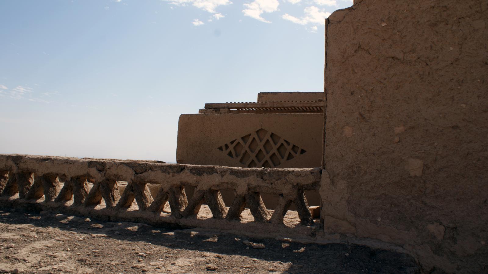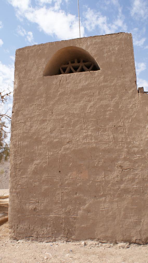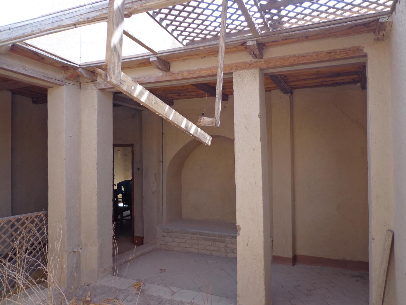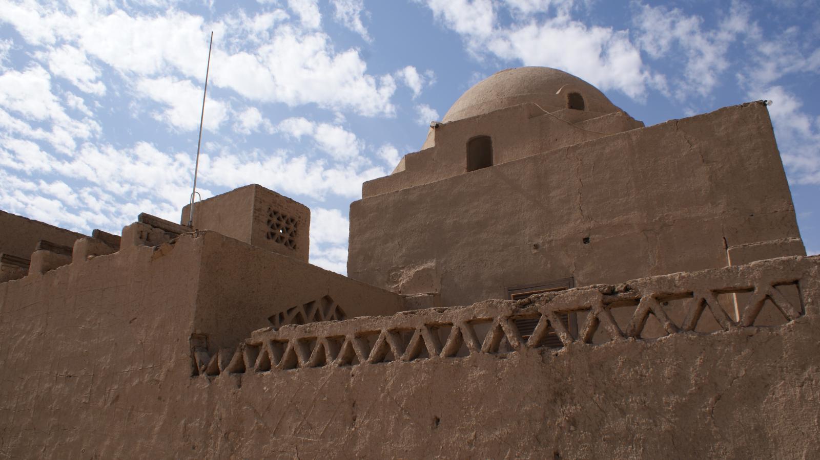 The entire house is made of mud brick with minimal use of wood, which was reserved for the roofing. Load bearing walls had foundations of limestone blocks. The mud brick was then plastered over. Later additions of electric wiring caused some damage to the fragile mud brick, and the wood was prone to termites. Conservation efforts have significantly restored the house, including adding new windows and doors decorated with mashrabiya, or latticework, common in Islamic architecture.