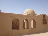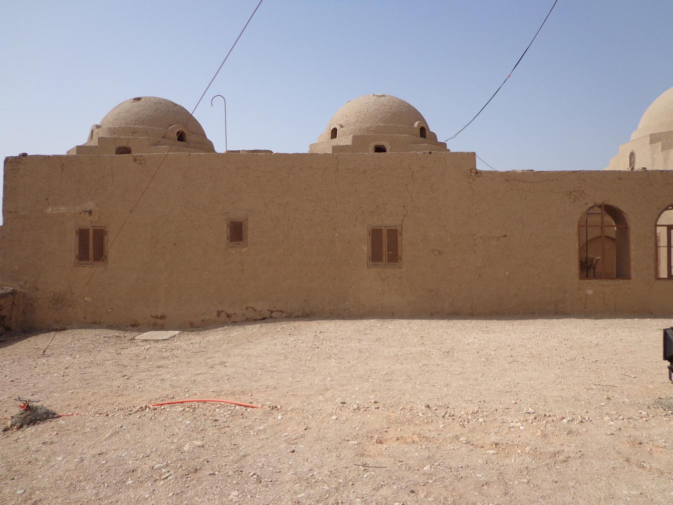 The Stoppelaere House is a complex composed of a sprawling house surrounded by three courtyards and a portico or garden on the south side of the house. Hassan Fathy designed it to function as both a private house as well as use for archaeological study. Bedrooms are situated on both extremes of the house, with the common areas, office, and drafting room arranged in the middle. A large dome, punctuated by small arched windows covers the common room, while two smaller domes, also punctuated by small arched windows, each cover a bedroom in the north east corner of the house. The domes are comprised of stepped squinches, giving the base of the domes their signature square shape. A flatter dome covers the courtyard in the south west portion of the house. Interior rooms have barrel vaulted ceilings, and several doorways are also barrel vaulted.