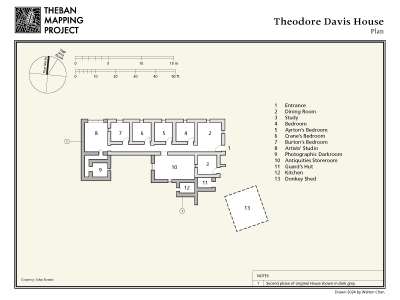 Like all buildings of mud, mudbrick, and stone, Davis House required regular maintenance to survive. After Davis’s death, when it sat idle, it quickly fell into ruin. Sixty years later, however, in 1978, John Romer, who was then exploring the Valley, undertook its restoration and enlargement, and made it his field headquarters. When his work ended, the house briefly served as a residence for local inspectors of antiquity. For the past three decades, however, Davis House has sat empty. Perhaps one day it can become a small museum, illustrating one of the most important periods in the history of KV archaeology.