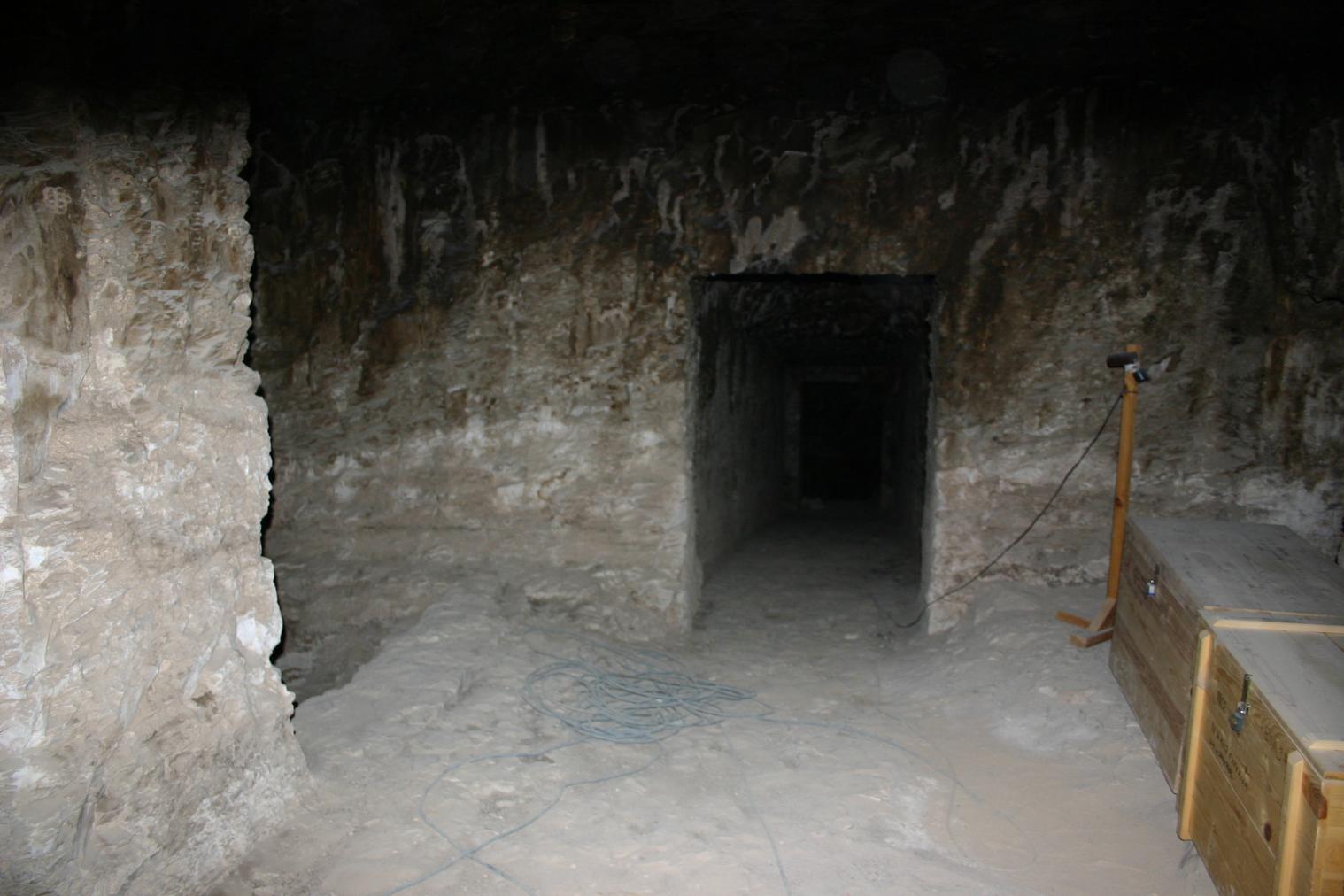 See entire tombSide chamber Fb was unfinished due to a slanting vein of calcite in its rear (west) wall.
