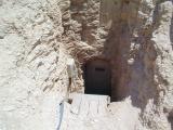 See entire tombThe left (west) jamb of this gate is thicker than the right (east) one and roughly parallel to the left side of the entryway. The face of the right thickness is roughly parallel to the right and left walls of chamber B. The rough gate has now been provided with a wooden door. The three lower steps of the entryway that pass through the gate have been repaired in cement.